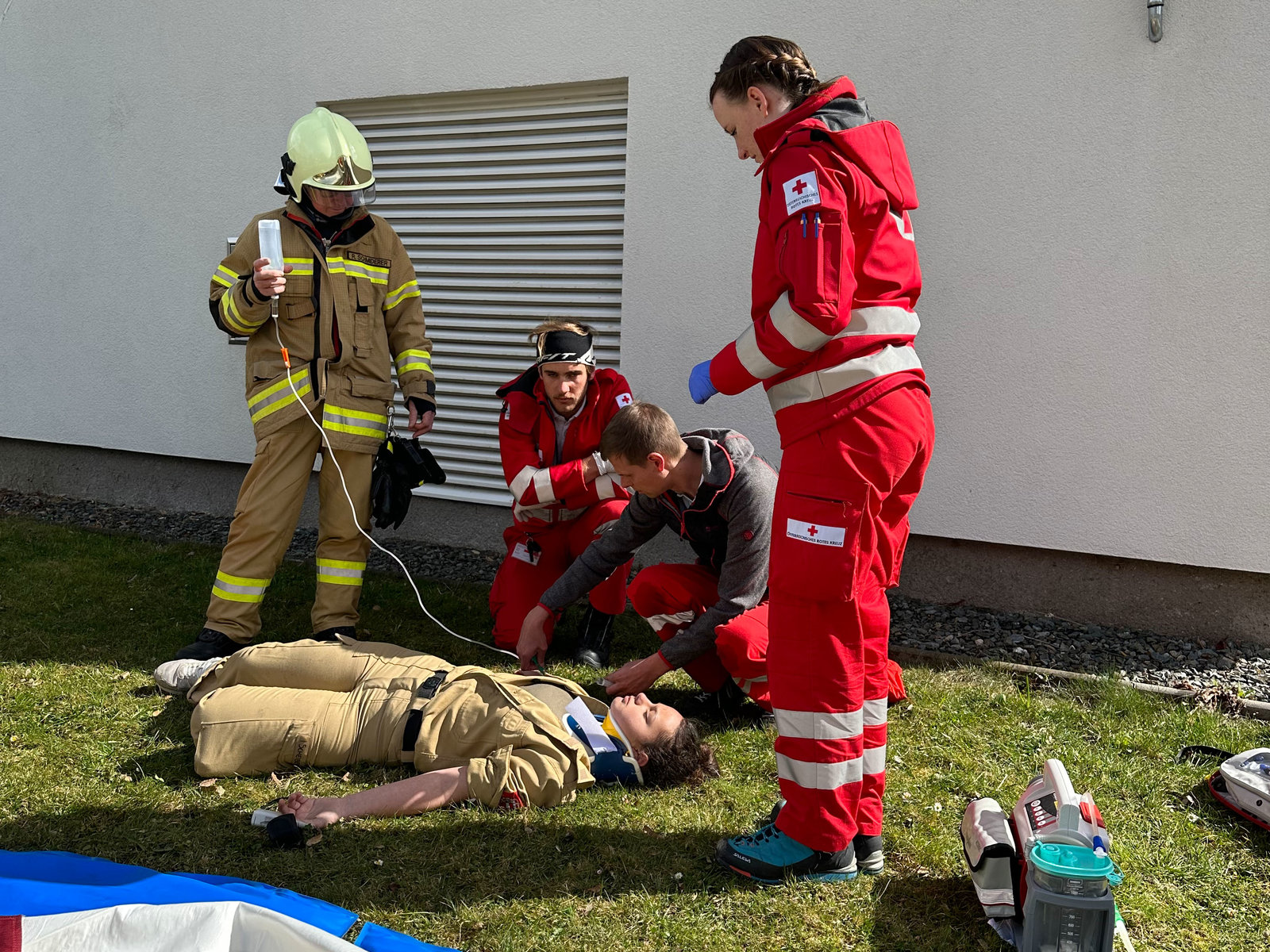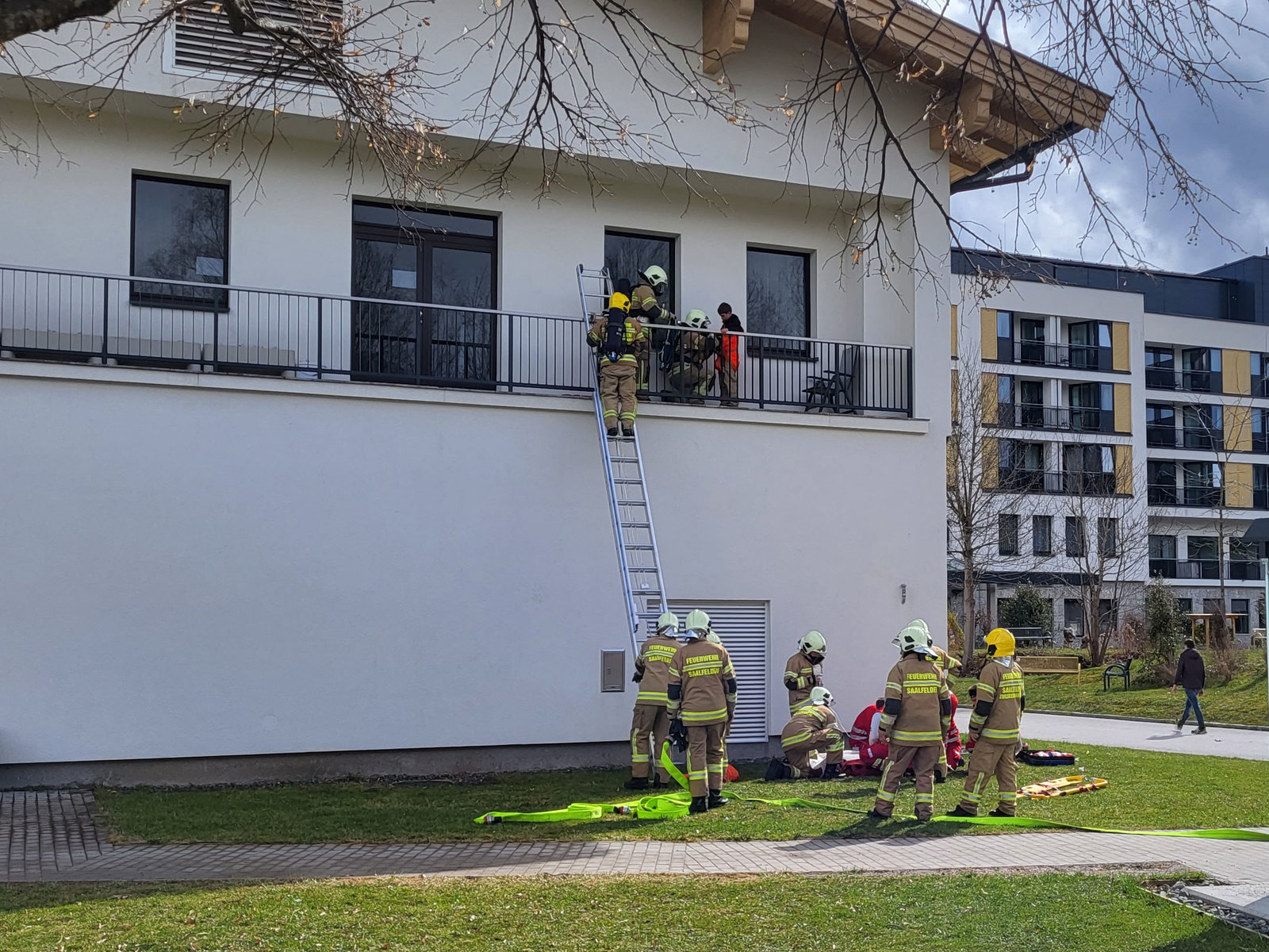 Um ca. 13.30 Uhr wurde die Feuerwehr Saalfelden zur Übung alarmiert. Gemeinsam mit dem Roten Kreuz stellten sich die vier Löschzüge sowie die Hauptwache dieser Aufgabe. Insgesamt wurden 19 Personen in Sicherheit gebracht und vom Roten Kreuz versorgt. Paralell dazu wurde die Wasserversorgung hergestellt und der angenommene Brand umfassend bekämpft.