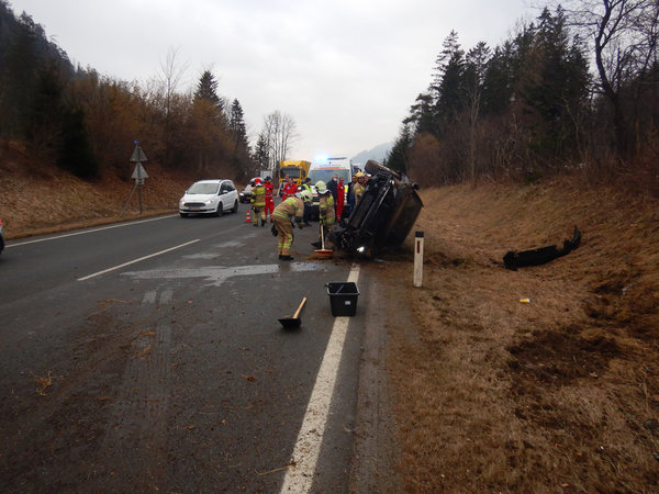 Die Personen konnten sich selbstständig aus dem Fahrzeug befreien und wurden vom Roten Kreuz versorgt.