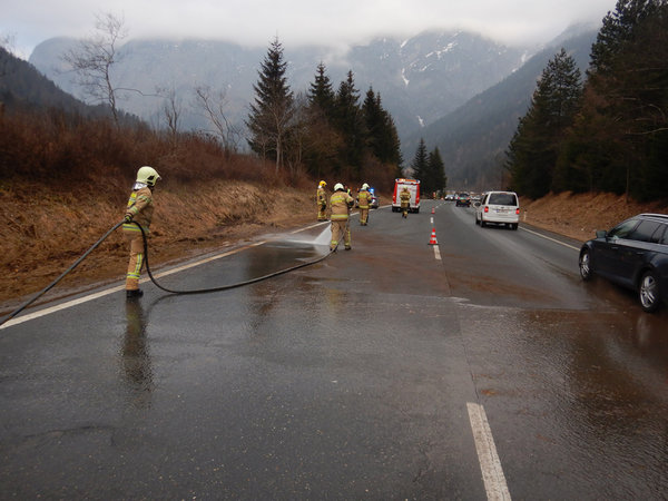 Die Feuerwehr Saalfelden Hauptwache wurde am 04.03.2023 um 07:45 Uhr zu Aufräumarbeiten nach einem Verkehrsunfall auf der B311 Höhe Stoissengut alarmiert.