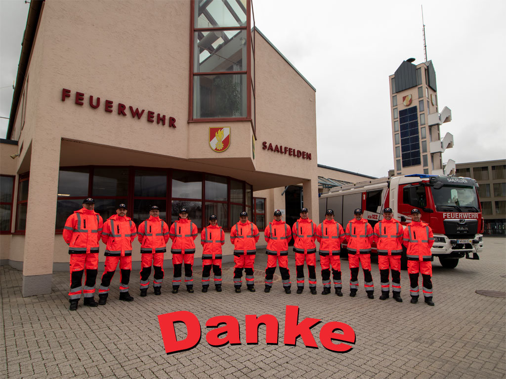 Dank Ihrer Spenden konnte die Feuerwehr Saalfelden die gesamte aktive Mannschaft mit einer neuen Regenschutzbekleidung ausstatten.