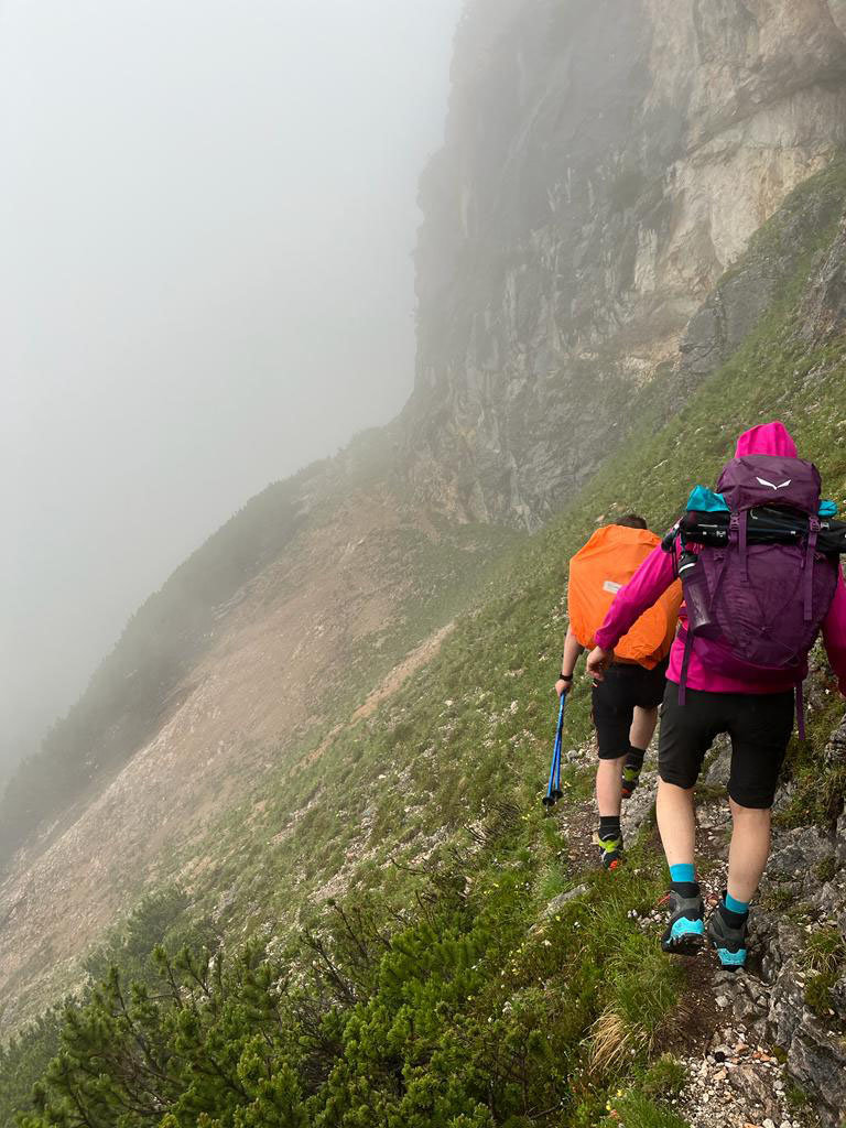 Im morgendlichen Regenschauer und im dichten Nebel machte sich die 28-köpfige Mannschaft der Hauptwache auf den Weg in die Schneegrube. Dort angekommen begrüßte sie ein eiskalter Wind und dichter Nebel. Der Wind war jedoch ein gern gesehener Gast, denn er trägt dazu bei, dass die Nebelschwaden und die dichten Wolken aus den Tälern und Bergspitzen geblasen werden.