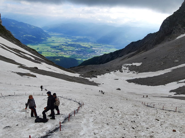 Der Wetterbericht klang vorerst vielversprechend, dennoch verhüllten am frühen Morgen dichte Wolken das Steinerne Meer. Doch die Frage, ob die Sonnwendfeuer abgesagt werden, traute sich keine und keiner laut auszusprechen. Unzählige Stunden an Vorbereitungen der Fackeln und die Materialtransporte in die Schneegrube wären quasi umsonst gewesen. Denn gut 700 Stück Fackeln inklusive den anderen benötigten Materialien wurden durch die Mitglieder der Feuerwehr Saalfelden im Vorfeld in die Schneegrube getragen.