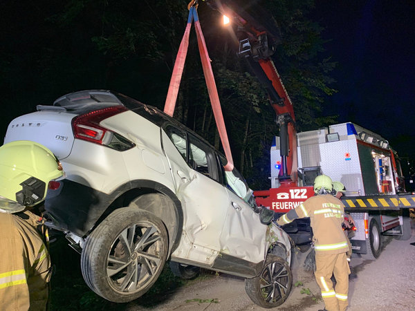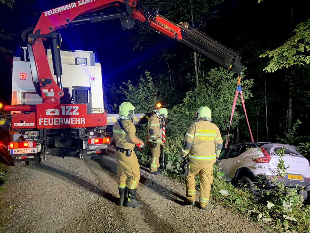 Die Rüstgruppe der Feuerwehr Saalfelden wurde am 24.08.2023 um 20:03 Uhr zu einer Fahrzeugberung nach Unken - Bereich Gföll - alarmiert.