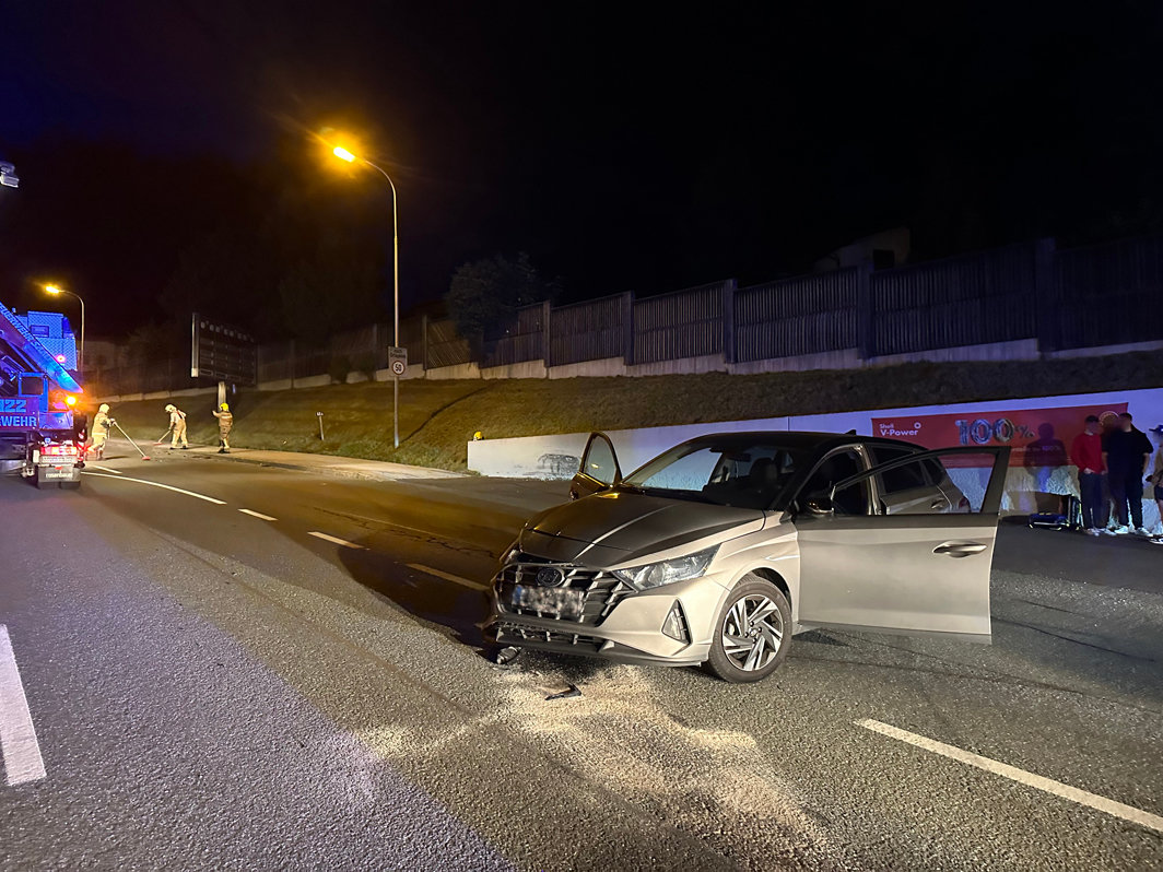 Während die Feuerwehren Saalfelden, Lofer, Unken und Zell am See mit dem Binden von ausgelaufenem Gefahrgut in einem Industriebetrieb beschäftigt waren wurden wir zu einem Verkehrsunfall auf der B311 im Ortsgebiet von Saalfelden alarmiert.