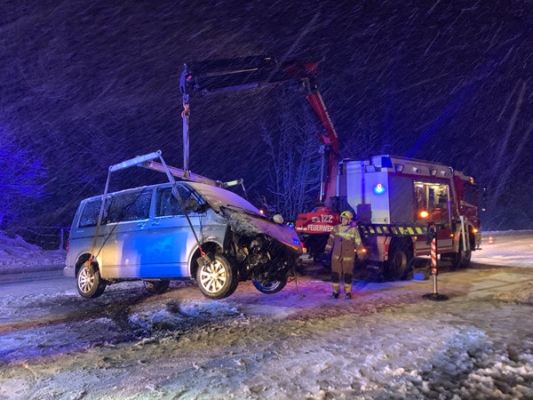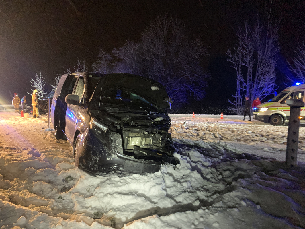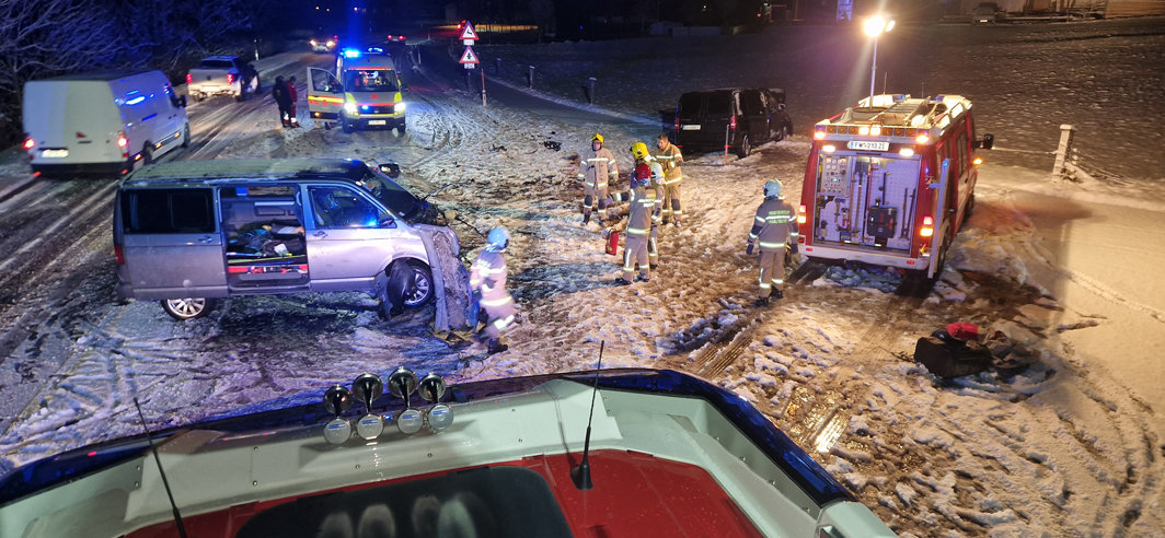 Am 25. November, gegen 02:30 Uhr, forderte ein Verkehrsunfall auf der B311 zwischen Saalfelden und Zell am See vier Verletzte. Der 22-jährige Lenker eines Transporters, der zwei weitere Personen im Alter von 25 und 24 Jahren an Bord hatte, war in Richtung Saalfelden unterwegs, als er aus Unachtsamkeit bzw. aufgrund der winterlichen Fahrbahnverhältnissen von seinem Fahrstreifen abkam und in den Gegenverkehrsbereich geriet. Dort kollidierte sein Fahrzeug frontal mit jenem eines entgegenkommenden 31-jährigen Taxilenkers. Alle vier Beteiligten wurden bei dem Aufprall unbestimmten Grades verletzt. Sie wurden vom Roten Kreuz nach einer Erstversorgung vor Ort zur weiteren Behandlung in das Tauernklinikum Zell am See verbracht. An den beiden Unfallfahrzeugen entstand erheblicher Sachschaden. Sie waren nicht mehr fahrbereit und mussten von einem Abschleppunternehmen abtransportiert werden. Einsatzkräfte der FFW Saalfelden führten die Aufräumarbeiten und die Verkehrsregelung durch. Durchgeführte Alkomattests verliefen negativ.