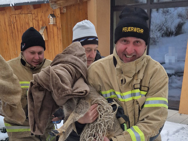 Ein Reh hatte sich in den Pfarrhof verirrt. Das Reh konnte nach Absprache mit dem Tierarzt sowie dem Aufsichtsjäger durch die Kameraden eingefangen und unverletzt im Wald freigelassen werden.