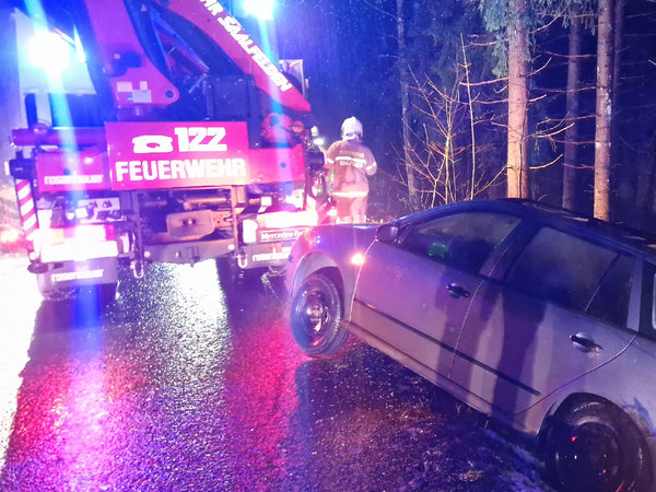 Nach Abarbeitung dieser Einsatzstellen wurde die Hauptwache am 25.01.2024 um 00:15 Uhr zu einer Fahrzeugbergung beim Kollingwald alarmiert. Ein Fahrzeug war von der Straße abgekommen und am Bankett hängengeblieben.