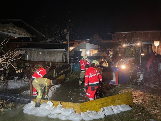 Die Feuerwehr Saalfelden Hauptwache sowie der Löschzug Wiesersberg wurden am 24.01.2024 ab 19:06 Uhr zu mehreren Unwettereinsätzen nach den Regenfällen alarmiert.