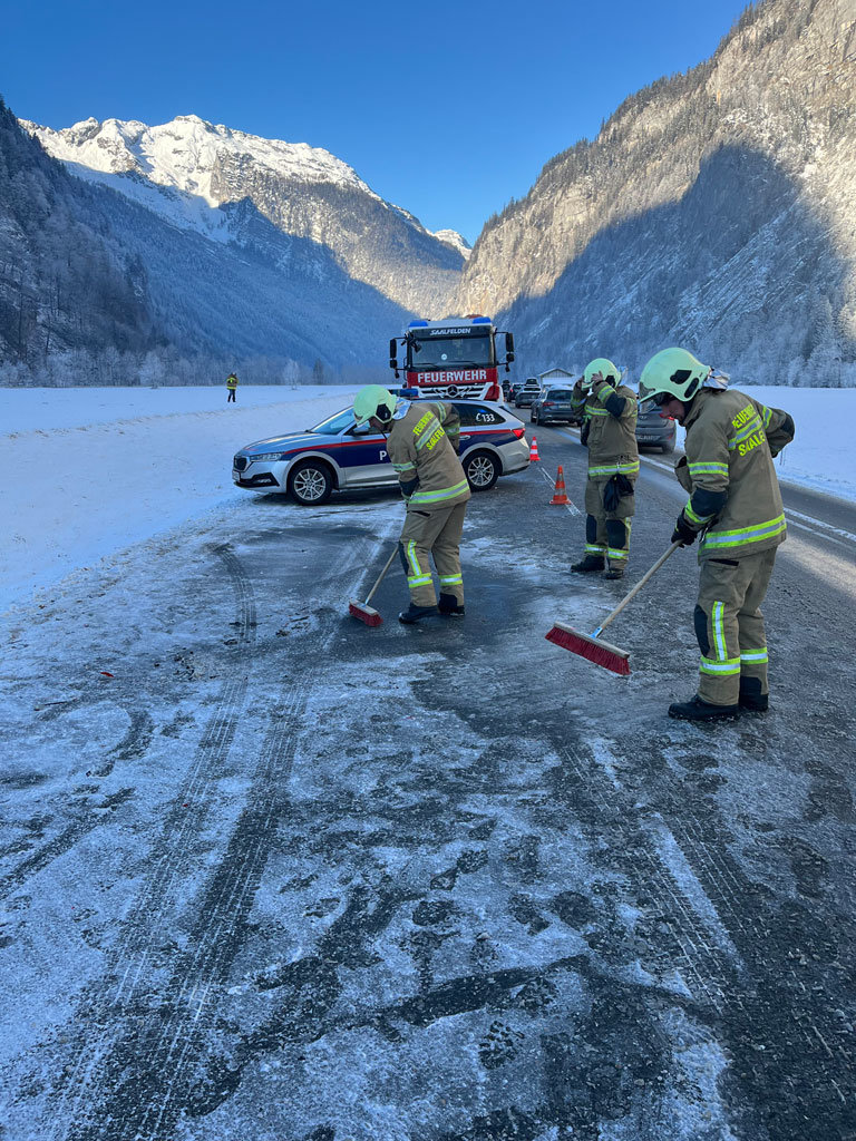 Die Feuerwehr Saalfelden sowie die Feuerwehr Weißbach wurden am 13.01.2024 um 10:10 Uhr zu einem Verkehrsunfall mit eingeklemmten Personen auf der B311 in Weißbach alarmiert.