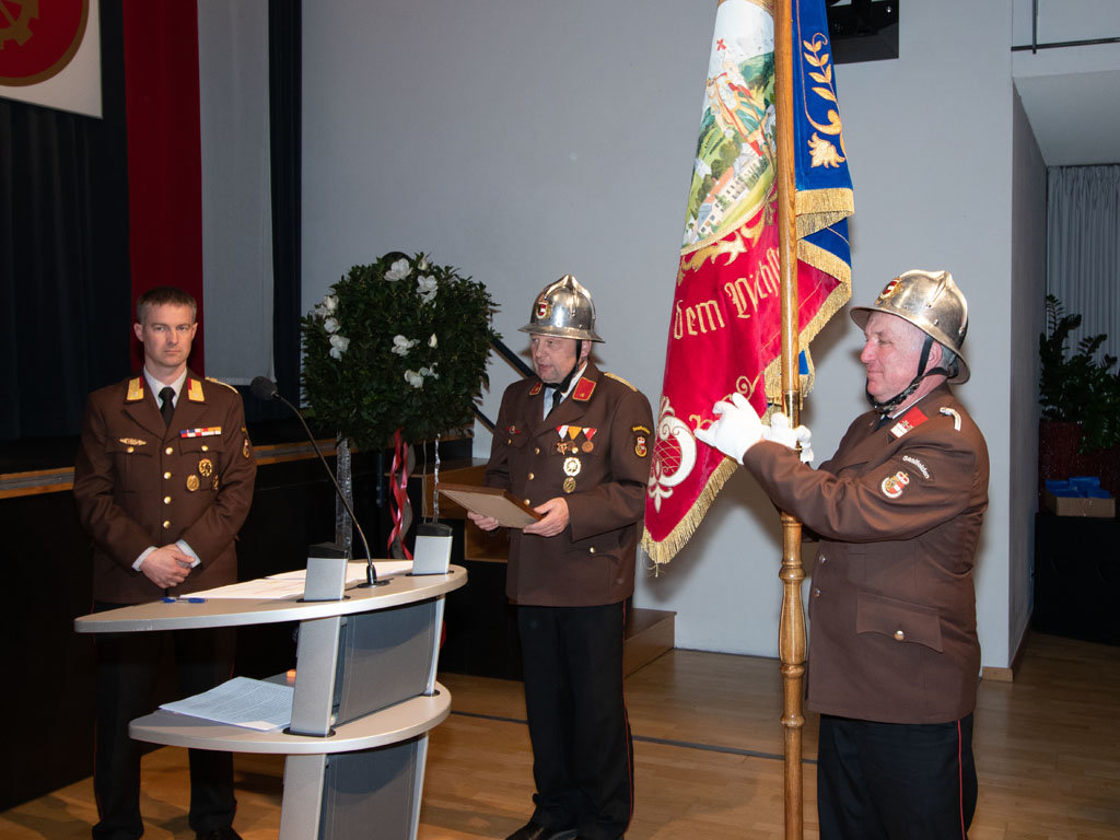 Zahlreiche Ehrengäste - unter anderem Bürgermeister Erich Rohrmoser, Abschnittsfeuerwehrkommandant BR Johann Leitinger, Dechant Mag. Alois Moser - sowie Vertreter der Gemeinde wurden von OFK Thomas Schreder begrüßt.