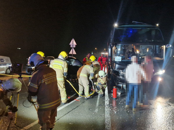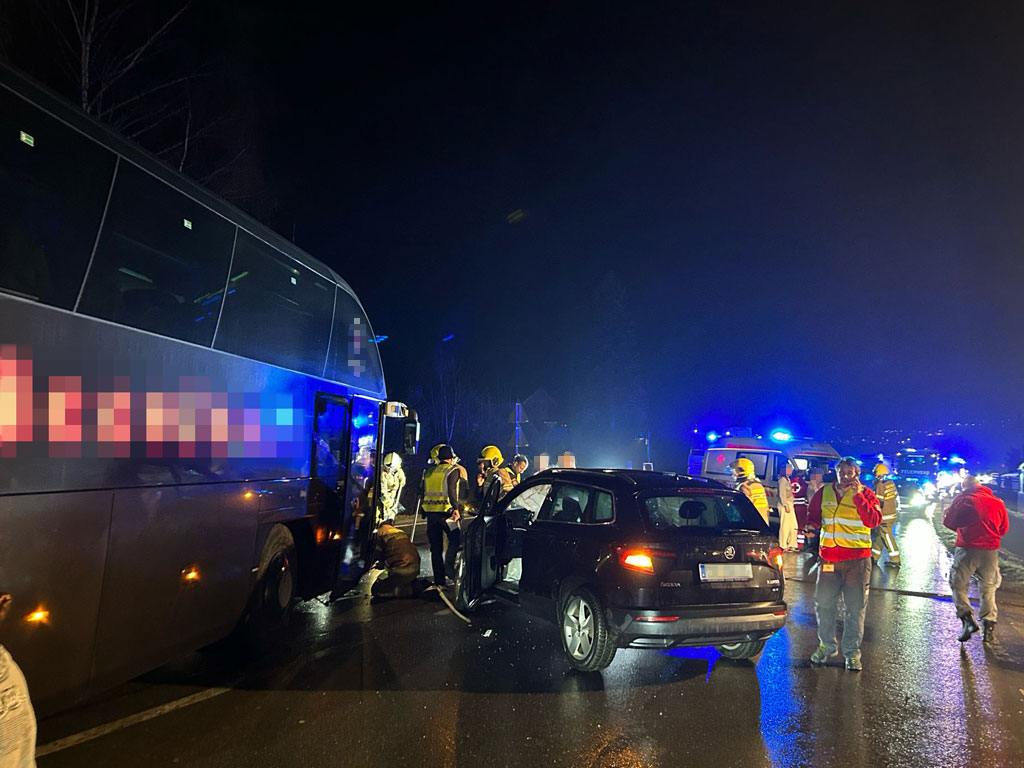 Die Feuerwehr sicherte die Unfallstelle, stellte den Brandschutz sicher und unterstützte das Rote Kreuz bei der Betreuung der Reisegruppe.