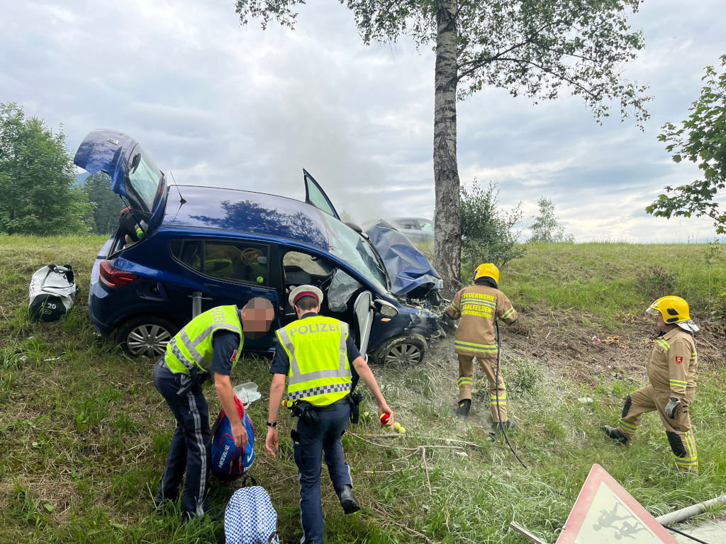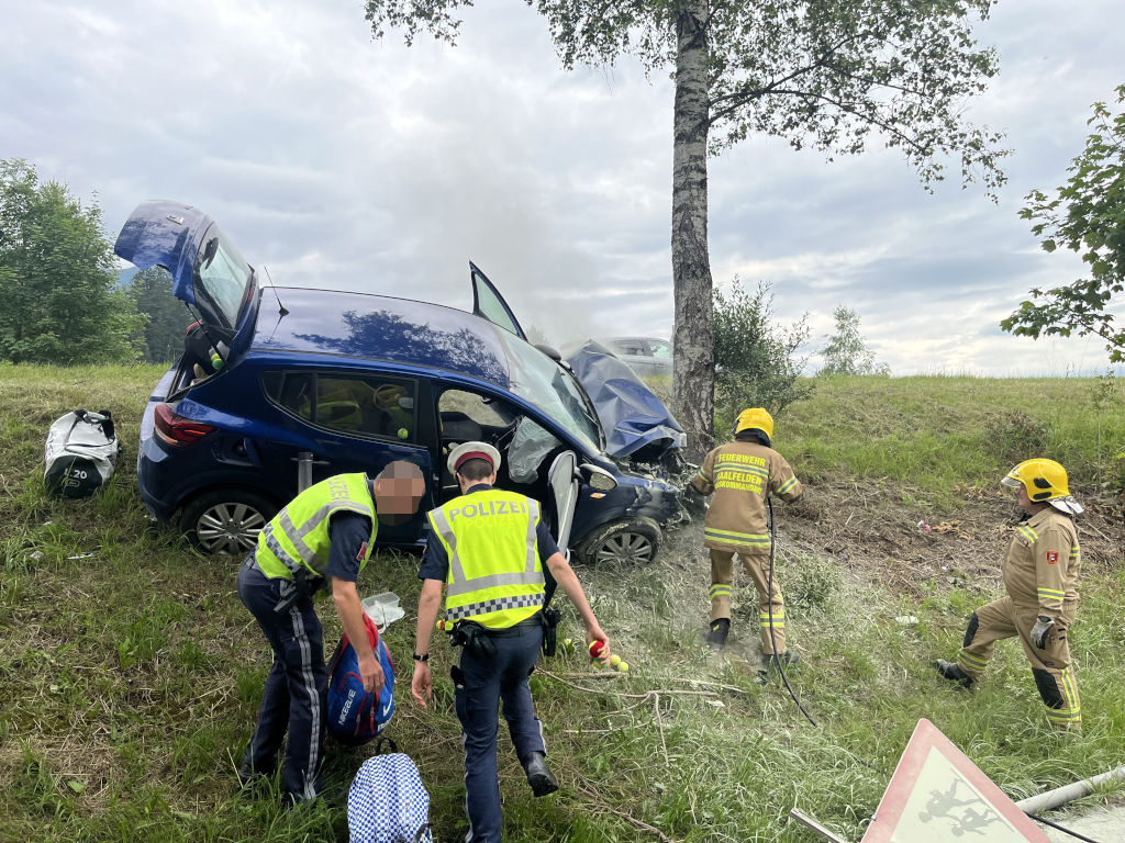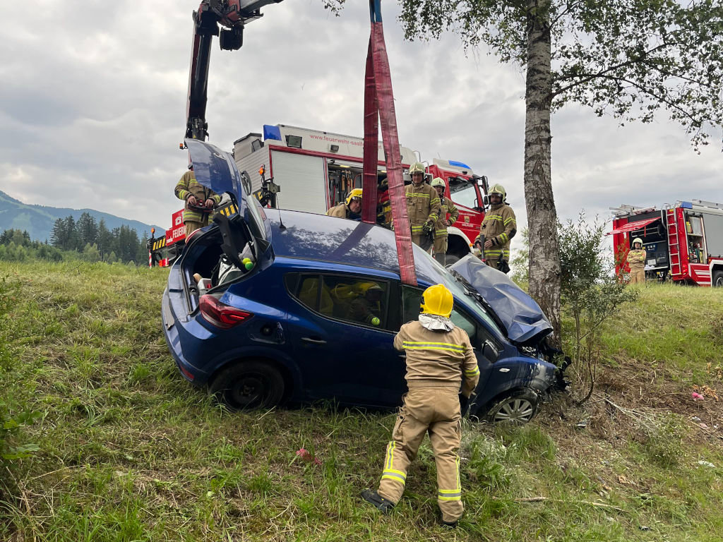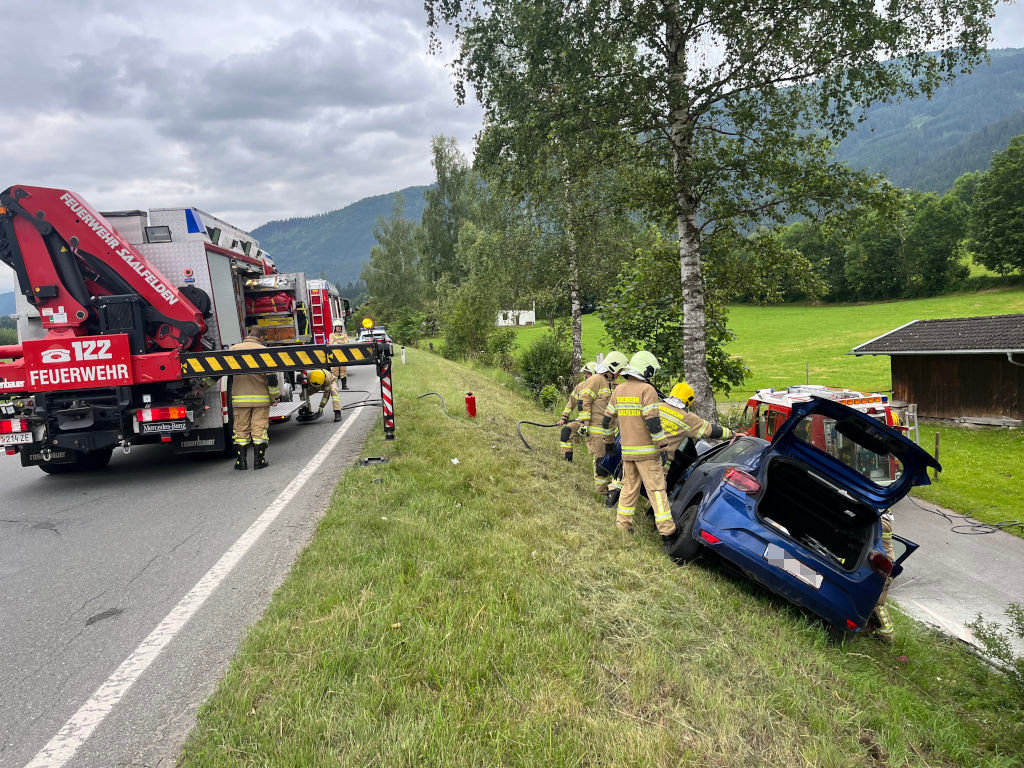 Am 27. Juni morgens kam ein 37-jähriger Einheimischer auf der B311, der Pinzgauerstraße, im Gemeindegebiet von Saalfelden aus noch unbekannter Ursache von der Fahrbahn ab. Der Pkw rammte am rechten Fahrbahnrand zwei Straßenleitpflöcke und ein Verkehrszeichen und prallte anschließend gegen einen Baum. Nachfolgende Verkehrsteilnehmer halfen dem Lenker aus dem stark beschädigten Fahrzeug. Da der Pkw im Bereich des Motors zu brennen begann, bekämpfte einer der Ersthelfer den Brand mit einem Feuerlöscher. Die Feuerwehr sorgte anschließend für die sichere Brandbekämpfung und Absicherung des Fahrzeuges, da der Pkw an einem Abhang zum Stehen gekommen war und abzurutschen drohte. Ein mit dem Lenker durchgeführter Alkotest verlief negativ. Der 37-Jährige wurde mit Verletzungen unbestimmten Grades von der Rettung ins Krankenhaus gebracht. Während der Bergungs- und Aufräumarbeiten war die B311 im Bereich der Unfallstelle nur einspurig befahrbar.