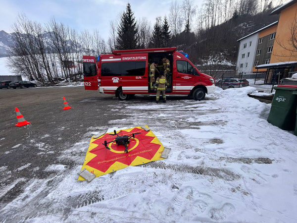 Die Kräfte aus Saalfelden unterstützten die Kameraden aus Maria Alm beim bekämpfen des Brandes mit der Drehleiter, mit dem Tanklöschfahrzeug, mit dem Atemschutzfahrzeug, mit der Drohne und dem Last 2 Fahrzeug.