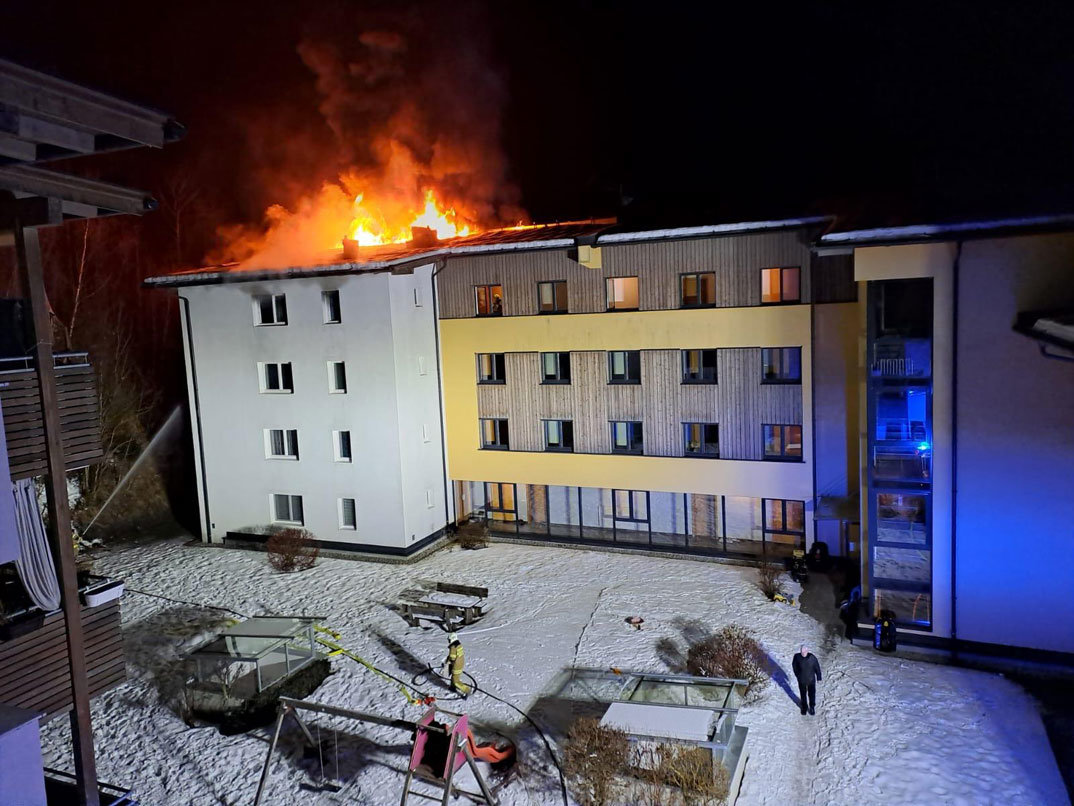 Die Feuerwehr Saalfelden wurde am 16.02.2025 um 05:32 Uhr zur Unterstützung der Feuerwehr Maria Alm bei einem Dachstuhlbrand alarmiert.