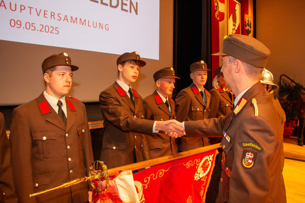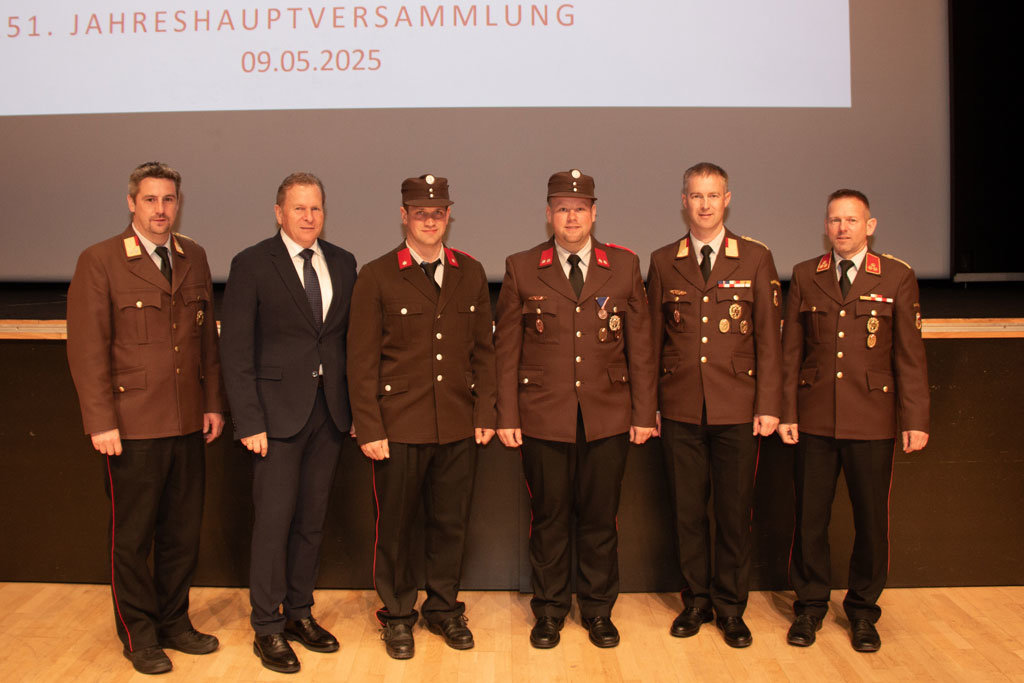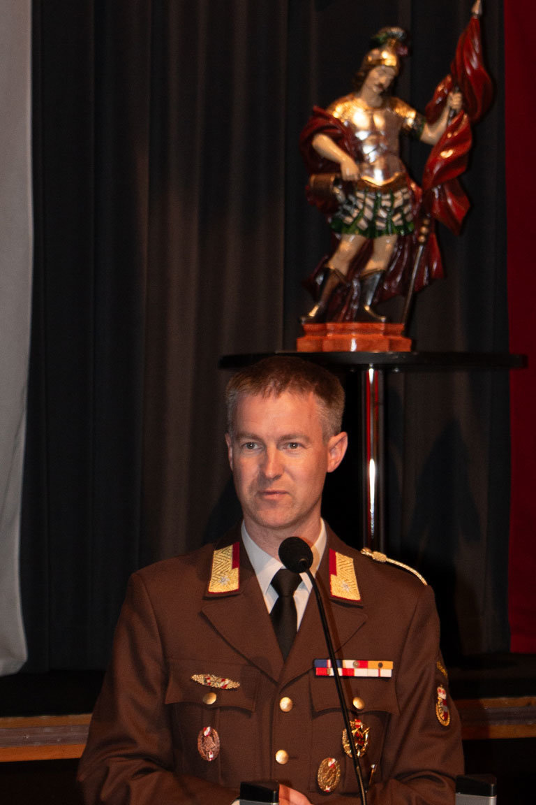 Bei seiner Ansprache bedankte sich OFK Thomas Schreder bei 235 aktiven Mitgliedern für 51.830 geleistete Stunden und für die Ausrückungen bei 950 Einsazalarmierungen im Jahr 2024.