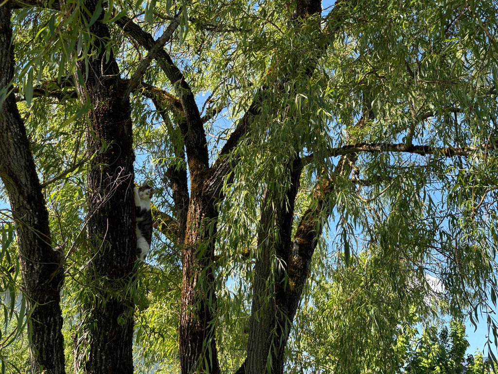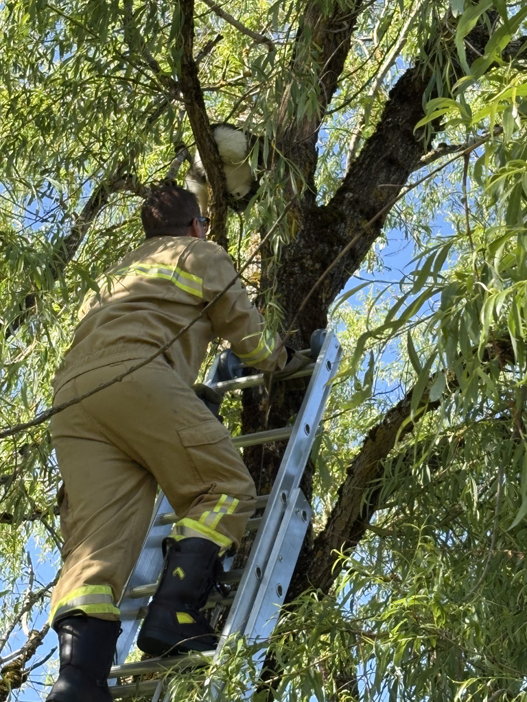 Eine Katze war auf einen Baum geklettert und konnte nicht mehr selbstständig herunter. Daraufhin rückte die Feuerwehr Saalfelden aus um die Katze vom Baum zu retten.