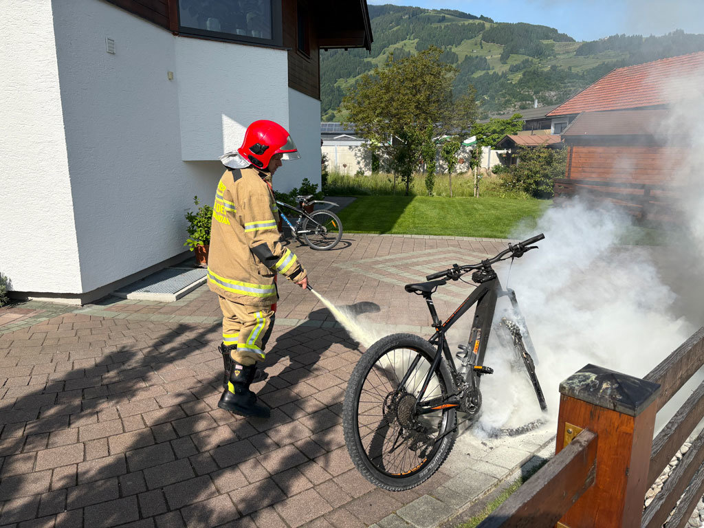 Die Feuerwehr Saalfelden wurde am 06.06.2025 um 09:05 Uhr zu einem Brand eines E-Bikes in den Sagschneiderweg alarmiert.