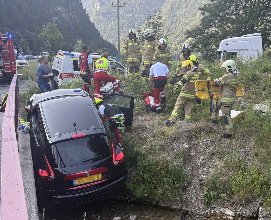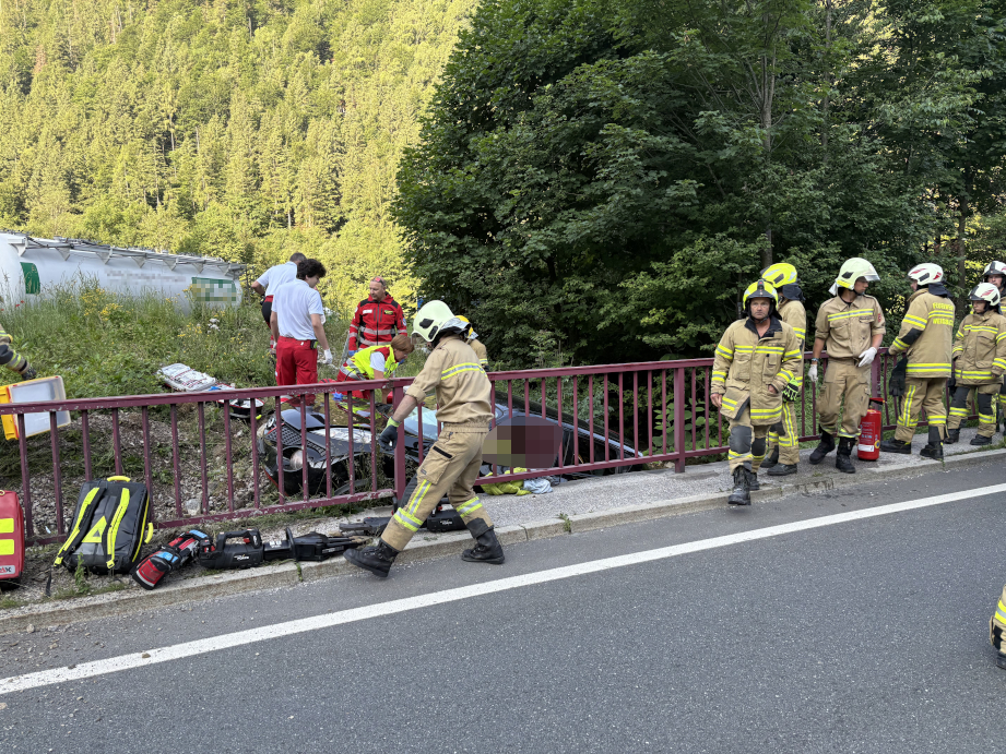 Ein Fahrzeug kam im Bereich der Brechlbach-Brücke von der Fahrbahn ab. Zwei Personen wurden dabei verletzt. Die Feuerwehr unterstützte das Rote Kreuz bei der Rettung der verletzten Personen.
