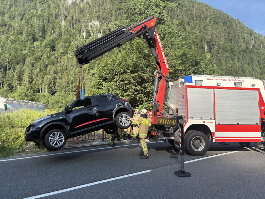 Am 21. Juni morgens fuhr ein Pkw-Lenker, ein 53-jähriger Niederländer, auf der B311, der Pinzgauer Bundesstraße, in Richtung Saalfelden. Der Niederländer kam im Gemeindegebiet von Weißbach bei Lofer aus bislang unbekannter Ursache von der Fahrbahn ab und kollidierte mit dem Geländer einer Brücke. Der Pkw stoppte anschließend an der Böschung eines Baches. Der 53-Jährige konnte sich selbständig aus dem Fahrzeug befreien. Seine 56-jährige Ehefrau musste von der Feuerwehr aus dem Fahrzeug befreit werden. Beide Personen erlitten Verletzungen unbestimmten Grades. Die Beifahrerin wurde vom Hubschrauber und der Lenker von der Rettung ins Krankenhaus gebracht. Ein mit dem Lenker durchgeführter Alkotest verlief negativ.