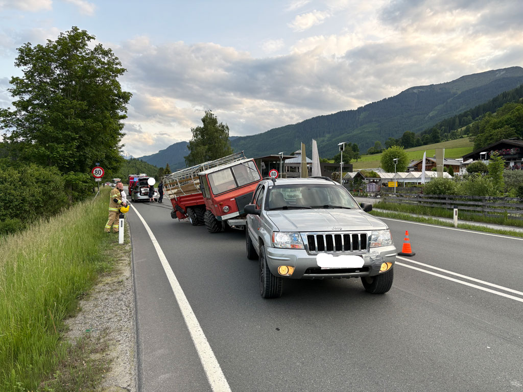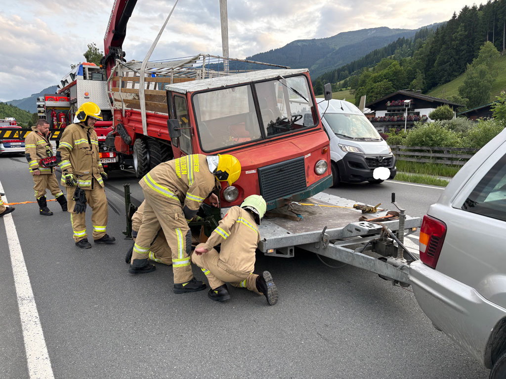 Die Bereitschaftsgruppe der Feuerwehr Saalfelden wurde am 05.06.2025 um 19:22 Uhr zu Aufräumarbeiten nach einem Verkehrsunfall alarmiert.