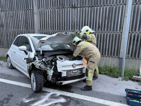 Ein Fahrzeug kam im Bereich der Einfahrt zum Brandlhof von der Fahrbahn ab und prallte gegen die Lärmschutzwand. Die beiden Insassen wurden vom Roten Kreuz versorgt.