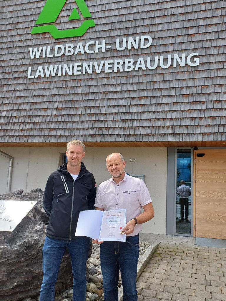 Die freiwillige Feuerwehr Saalfelden freut sich Herrn Hofrat DI Franz Anker von der Wildbach- und Lawinenverbauung Pinzgau eine Ehrung für verdienstvolle Zusammenarbeit überreichen zu können. Ortsfeuerwehrkommandant Thomas Schreder überreichte die Ehrung für verdienstvolle Zusammenarbeit 3. Stufe an Hofrat DI Franz Anker.