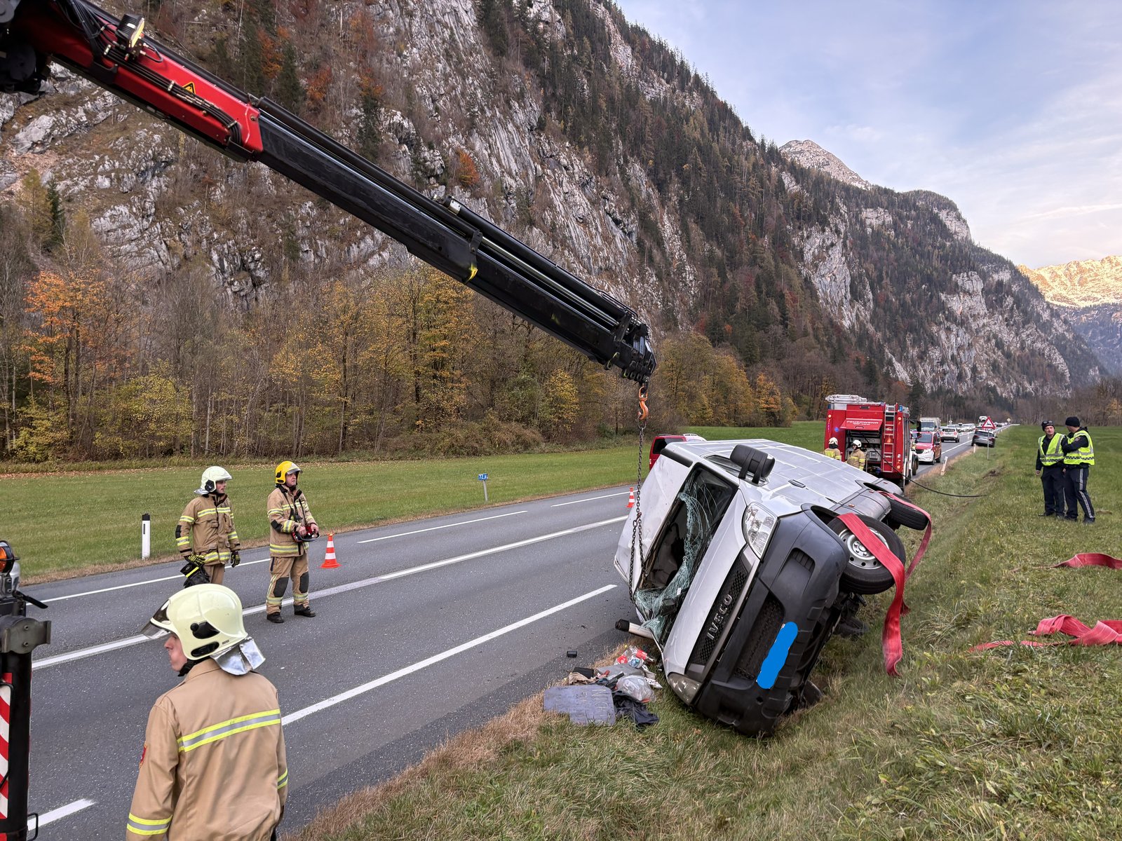 Die Feuerwehr Saalfelden und die Feuerwehr Weißbach wurden am 29.10.2025 um 15:52 zu einem Verkehrsunfall auf die B311 im Bereich Weißbach-Frohnwies alarmiert. Am Einsatzort war ein Transporter umgekippt, die Insassen waren bereits außerhalb des Fahrzeuges.