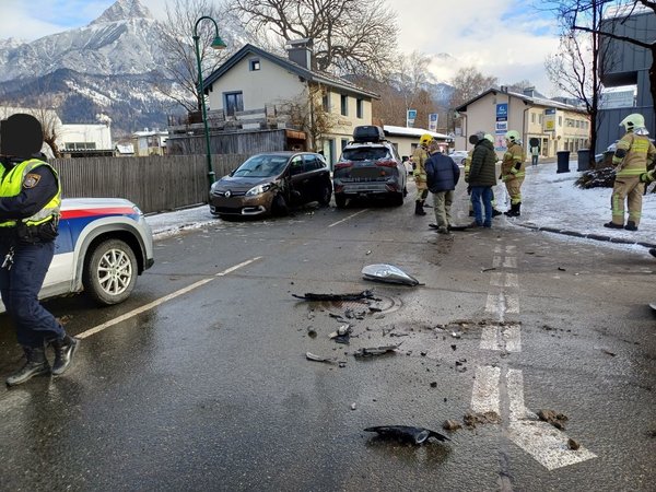 Die Bereitschaftsgruppe der Feuerwehr Saalfelden wurde am 31.12.2025 um 11:02 Uhr zu einem Verkehrsunfall in die Bahnhofstraße alarmiert. Drei PKw sind im Kreuzungsbereich kollidiert.