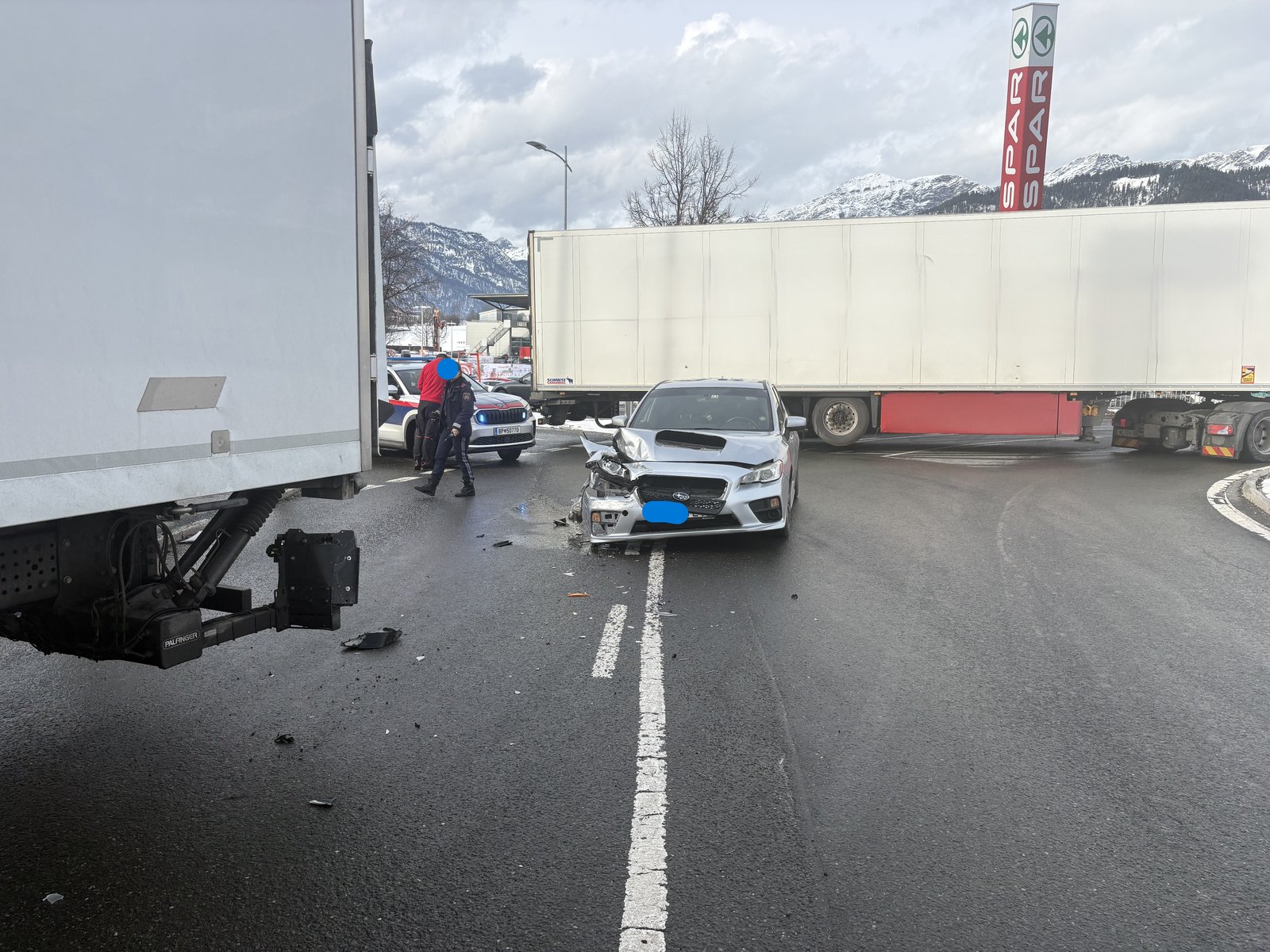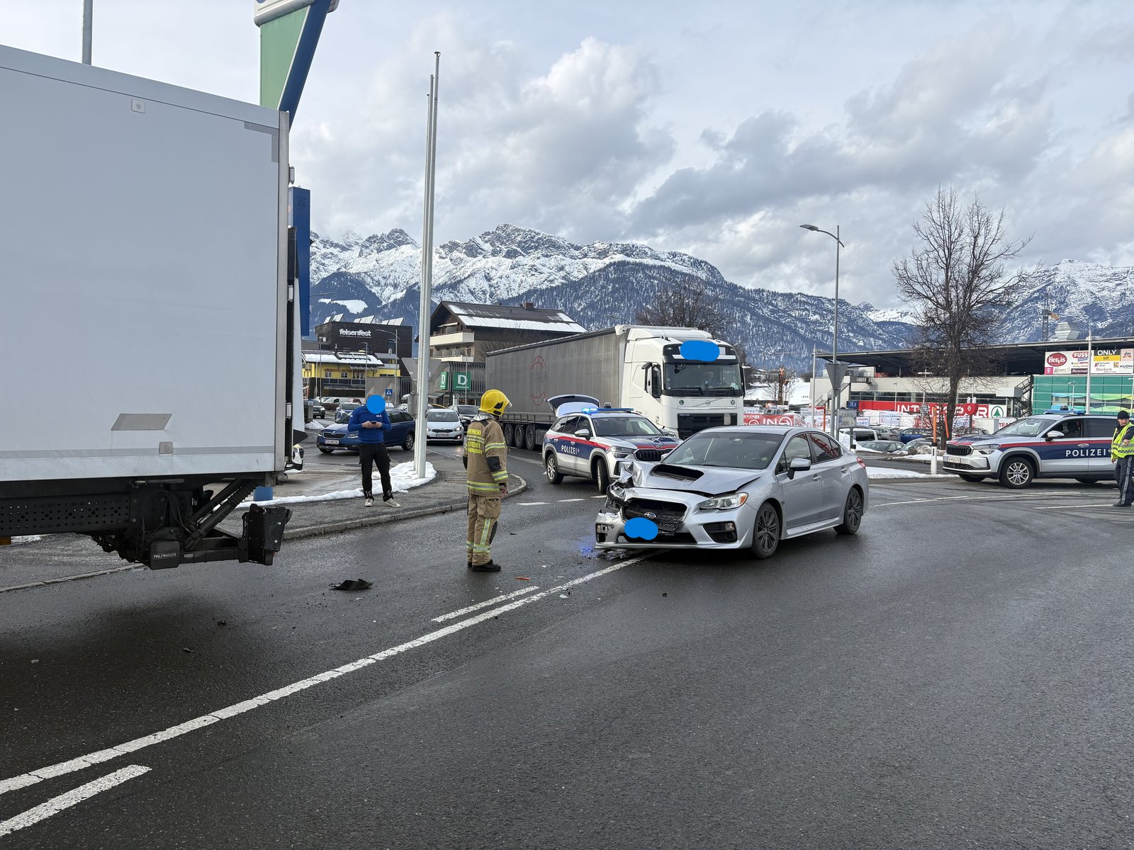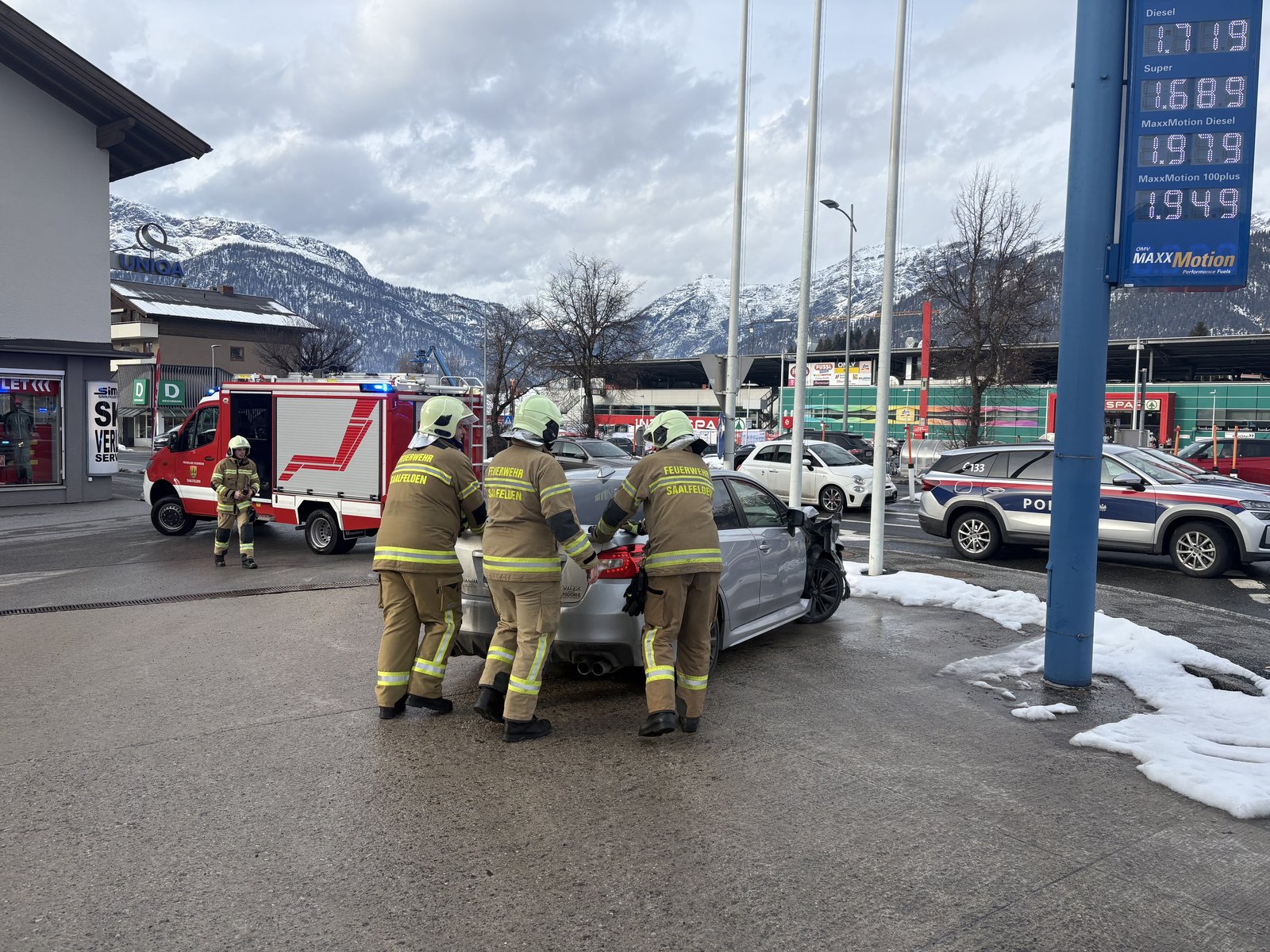 Die Feuerwehr Saalfelden wurde am 23.02.2026 um 15:45 zu einem Verkehrsunfall beim Interspar-Kreisverkehr alarmiert. Vor Ort waren ein LKW und ein PKW kollidiert, beim Eintreffen des Einsatzleiters befanden sich keine Personen mehr in den Fahrzeugen. Durch die Feuerwehr Saalfelden wurden Aufräumarbeiten durchgeführt, sowie auslaufende Betriebsmittel gebunden.