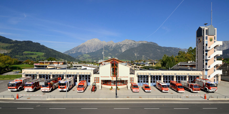 | Grundstücksgröße 6040m² - Nutzfläche Feuerwehr-Haus: 2210m² - Wohnnutzfläche: 370m² Umbauter Raum ( gesamt ): 11605m³ - Die Kosten haben netto ca. S 47.000,000,- betragen. Einige markante Zahlen der Einsatzzentrale: Eingezogene Elektrokabel ( Schwach und Starkstrom ) : 38.500 lfm Stahlverbrauch: 94000 kg - Betonverbrauch: 2230m³ - das entspricht einem Gewicht von : 5352 t Termine ( Bauzeit ): Erteilung der Bauplatzerklärung: 3.11.1988 - Erteilung der Baubewilligung: 13.2.1989 - Spatenstichfeier: 22.7.1989 Baubeginn: 24.7.1989 - Firstfeier: 30.8.1990 - Einweihung: 24.5.1991 bis 26.5.1991 |